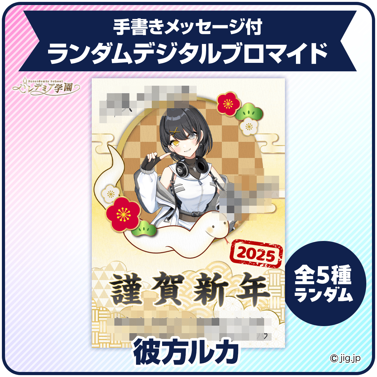 手書きメッセージ付きの全5種ランダムデジタルブロマイドです。