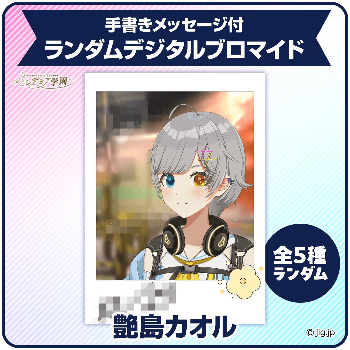 手書きメッセージ付きの全5種ランダムデジタルブロマイドです。